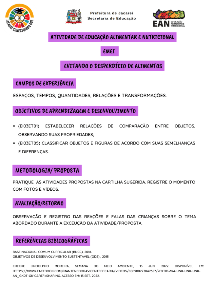 EAN - Evitando o desperdício de alimentos - EMEI